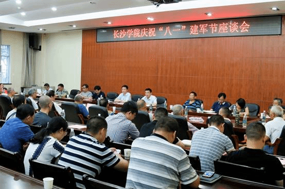 座谈会上,参会代表踊跃发言,座谈会气氛热烈。退役军人代表蒋益教授回顾了我国军队的发展历程,分析了近几年国际国内形势,他表示:“我们的军队越来越强大是我心底最大的心愿”。今年82岁、参加过抗美援朝的退休教师夏忠阳表示:在以习近平总书记为代表的党中央的领导下,我们在治党、治军、治国等方面都取得了巨大成绩,在共产党的领导下,一切困难都可解决。长沙学院原副校长熊国章表示:祖国的发展日新月异,要珍惜今天幸福美好的生活。他寄语在职的战友要不忘初心,努力工作;退休的战友则要老有所乐,老有所为。在职的退役军人阮宏伟、李权分别讲述了自己从部队转业后的心路历程,感恩学校对他们的接纳和培养及在新的岗位上经历的新的历练。他们表示,要永葆军人本色,加强自身学习,发挥敢打硬战、善打硬仗的长处,为学校的改革发展作出自己的贡献。退伍的学生代表吴学潼回顾了自己两年多所经历的身份转变及在这个过程中的成长和收获,他谈及两年的军旅生涯直言“不后悔”。会上,大家肯定了习近平总书记重视军队建设,严格治军的思想,对军队建设、国家发展充满信心。同时对学校能在“八一”建军节前召开座谈会表示欣慰,对政府、以及学校的关怀表示感谢。