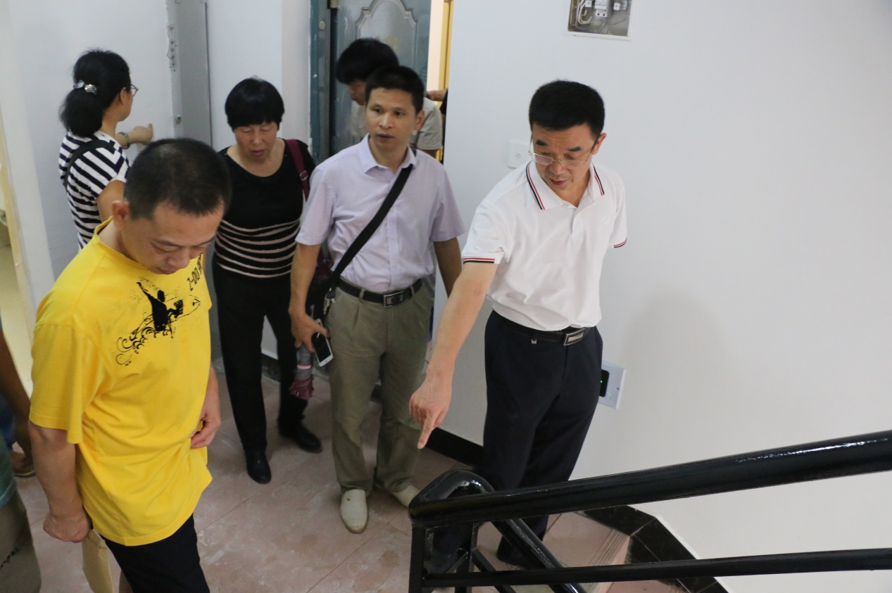 周明侠副校长一行仔细查看洪山十栋维修改造室内项目