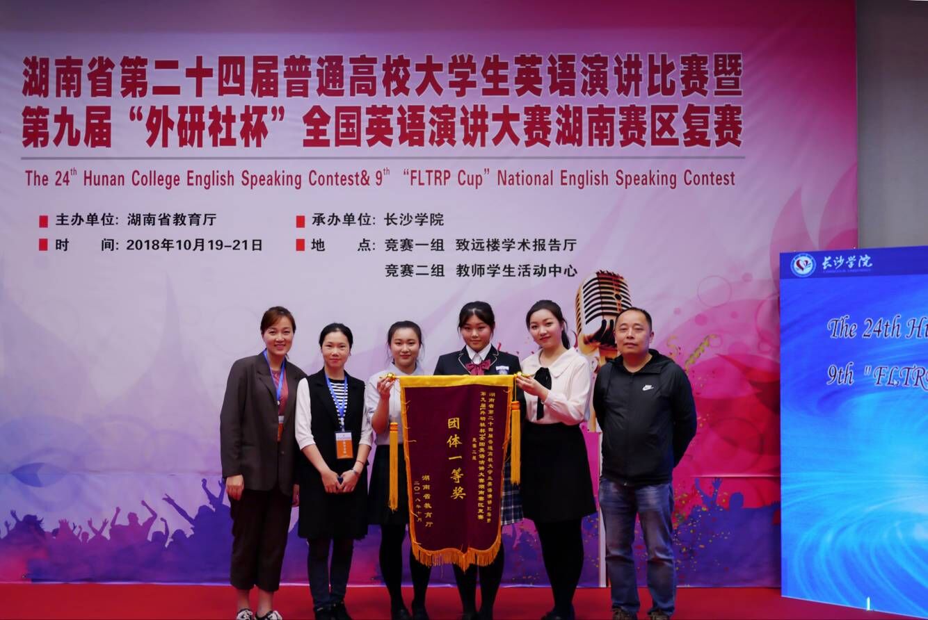 10月19日至21日,由湖南省教育厅主办的湖南省第二十四届普通高校大学生英语演讲比赛在我校举行,来自全省37所高校51支代表队的153名选手参与了激烈的角逐。由我校公共外语教学部主任涂靖教授担任领队,王文钦、郭兰、陈瑛三位老师担任指导教师的参赛队伍沉着冷静、顽强拼搏,夺得团体一等奖一项和个人一等奖三项。影视艺术与文化传播学院刘馨仪同学,生物与环境工程学院赵佳妮同学双双夺得非英语专业组个人一等奖;外国语学院司佳璇同学夺得英语专业组个人一等奖。