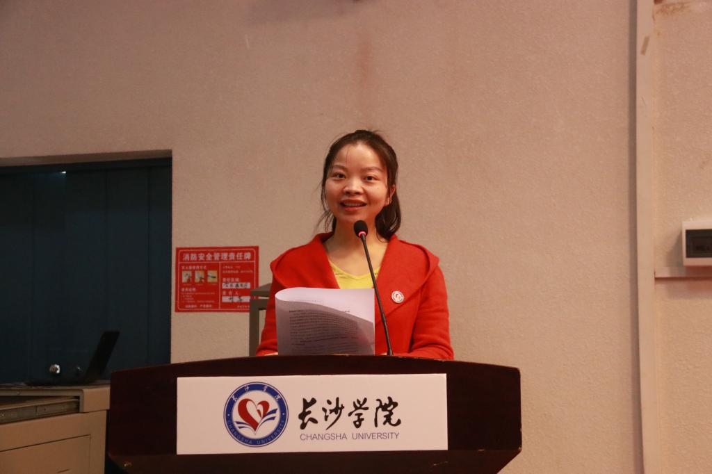 长沙学院学生会主席提名人选储梦秋代表长沙学院第三届学生委员会作了题为《青春建功新时代,勇担使命筑梦想——为建设特色鲜明的应用型地方大学贡献青春和力量》的报告,对长沙学院第三次学代会以来的工作进行了总结。他在肯定已取得的成就的同时,也分析了面临的形势与不足,并强调全校各级学生组织必须下定决心,采取有效措施加以解决。随后,他报告了今后两年的重点工作,提出坚持先进理论武装头脑、坚持营造良好的校园文化氛围、坚持创新服务模式、坚持加强自身建设、坚持加强传承与创新的“五个坚持”工作思路。