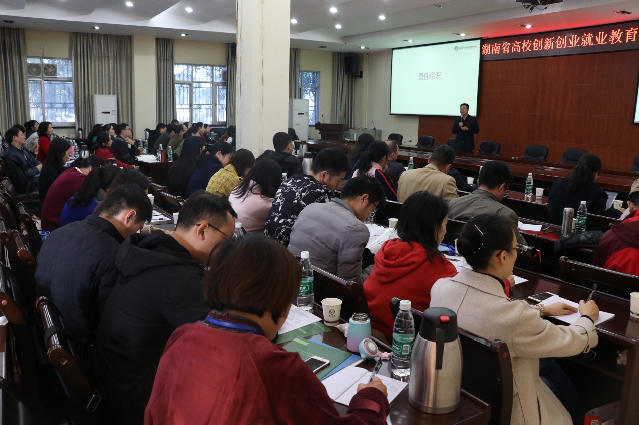 11月29日上午,由湖南省大中专学校学生信息咨询与就业指导中心主办的2018年湖南省高校创新创业就业教育培训班在我校开班。开班式由湖南省大中专学校学生信息咨询与就业指导中心副调研员李昌维主持。