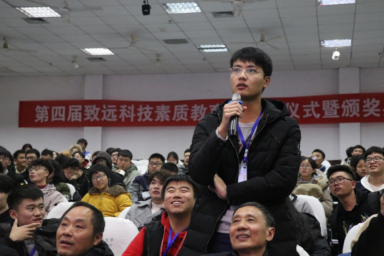 出席领导和嘉宾为在致远科技素质月系列活动中获奖的队伍颁奖。甄洁洪宣布我校第四届致远科技素质教育月闭幕。她在发言中表示,大学生科技活动的开展对于引领校园文化,弘扬科学精神,增强创新意识,强化技能培养,提高学生综合素质具有非常重要的作用,希望我校广大青年不断努力,在更高的科技活动平台上取得傲人成绩。