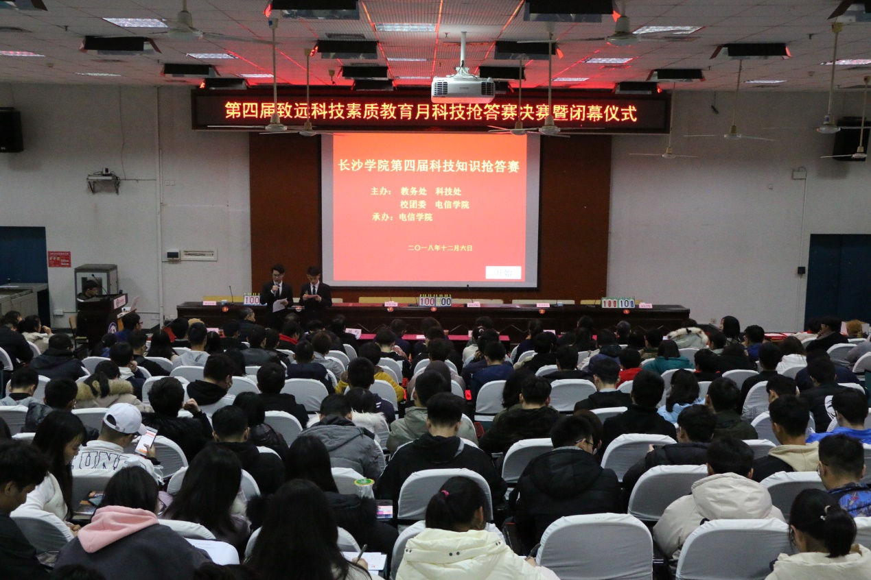 科技知识抢答赛决赛是本届致远科技素质教育月系列活动的收官之战,比赛采用的题目全部自校内师生征集而来。电子信息与电气工程学院、土木工程学院、机电工程学院、经济与管理学院、计算机科学与技术学院、影视艺术与文化传播学院等六个学院的学生参与了比赛。经过笔试初赛后,共有六支队伍、18位同学进入决赛。