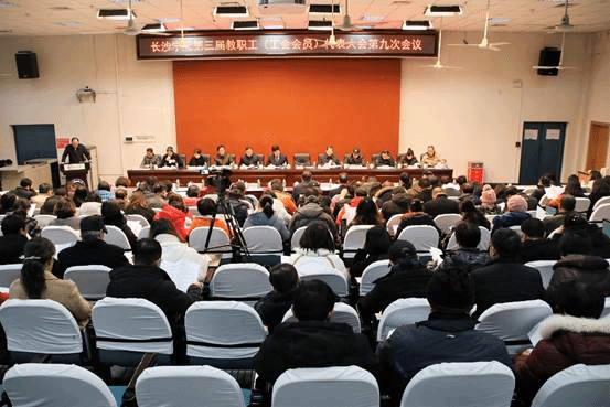 1月12日上午,长沙学院第三届教职工(工会会员)代表大会第九次会议在致远楼学术报告厅召开。大会应到正式代表106人,实到99人。大会听取、讨论、审议并通过了校长杨小云所作的《长沙学院专业技术职称评审实施办法(暂行)》的报告,会议由党委副书记、工会主席屈林岩主持。