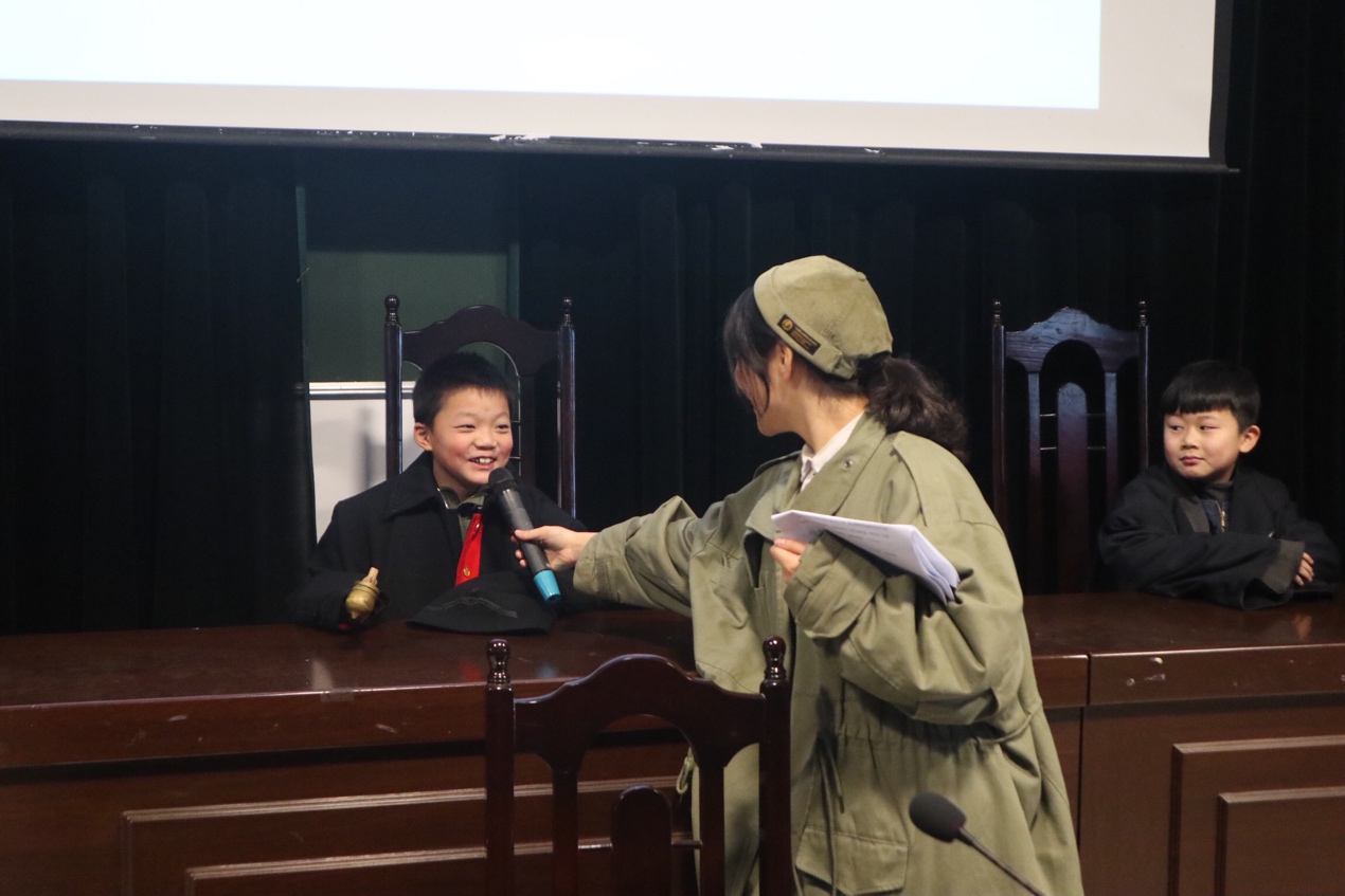 “现在开庭!”本次活动以模拟法庭、情景剧演绎等形式开展,孩子们穿上法官法袍互动学习。模拟法庭就“校园暴力借钱”案例进行审理,进行法庭调查、法庭质证和法庭辩论。40名小朋友逐渐融入到法庭庄严肃穆的氛围中,不停地就法庭的程序、审判结果及法庭人员构成等问题向主持人提问,表现出对法律的浓厚兴趣。“穿上这件衣服,坐上这把椅子,我感觉自己变成了真的法官。”一位小朋友表示。