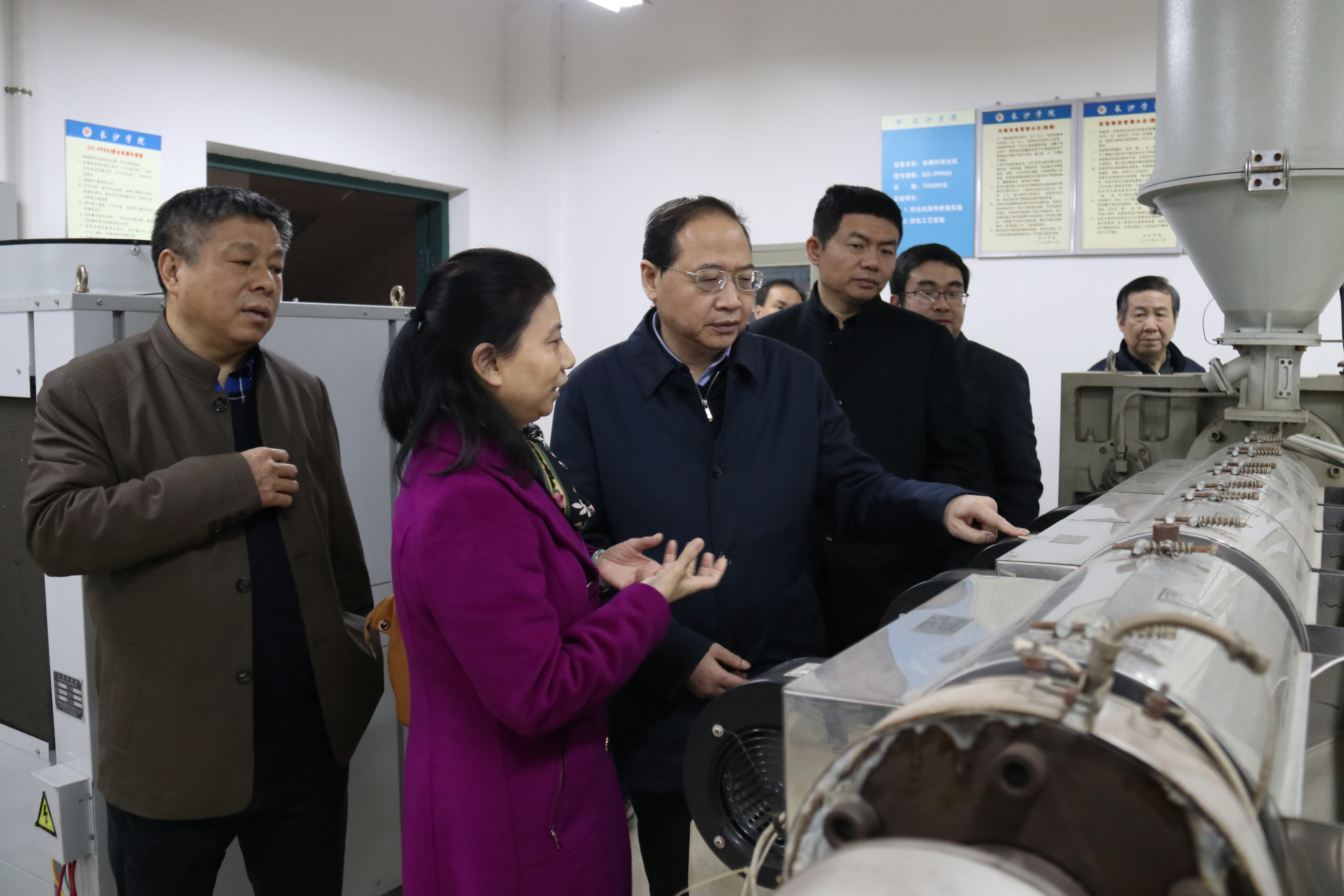 在机电工程学院,郭塨一行了解了各项实验仪器的使用方法和原理,询问了机电工程学院人才培养的定位及毕业生去向。