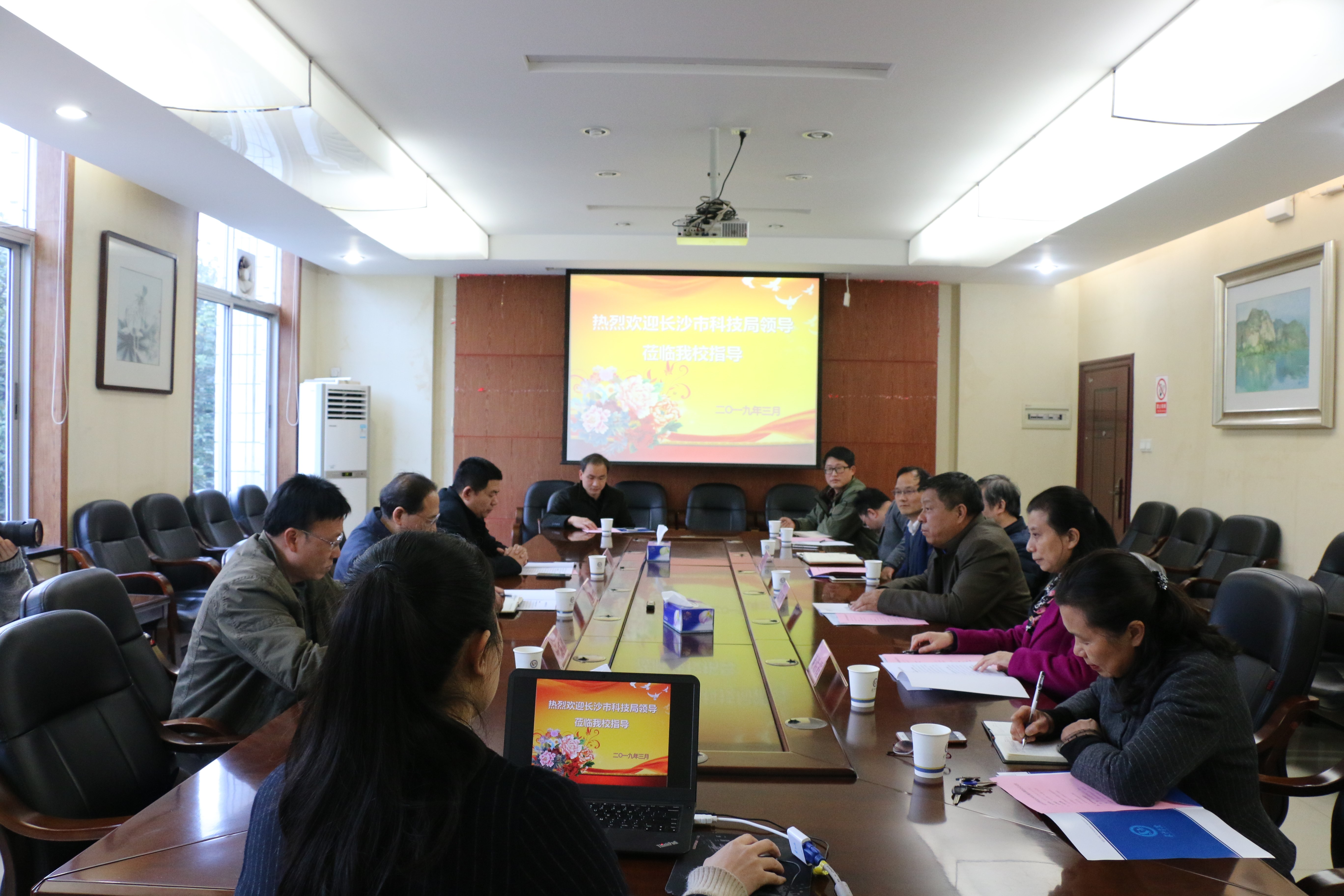 在随后召开的座谈会上,副校长胡石明对市科技局领导的到来表示热烈欢迎,并简单介绍了我校基本情况。科技处处长庞佑霞汇报了我校近年来的科研工作情况,表明了今后的科研工作思路以及面临的问题。