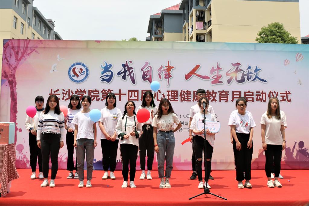 周明侠为活动致辞并宣布长沙学院第十四届大学生心理健康月活动正式启动。他表示,5月25日是全国大学生心理健康日,今年的“5·25”恰逢五四运动100周年,他鼓励广大青年同学们时刻践行自律精神,做好人生规划,脚踏实地,健康成长,感恩家庭,报效国家,服务社会。