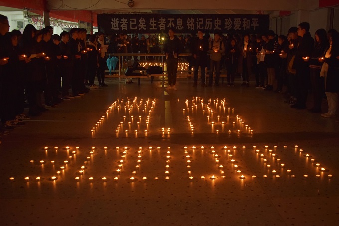 活动中,数百名团学干部为在侵华日军惨绝人寰的大屠杀中失去生命的死难者和近代以来抵抗外来侵略中牺牲的同胞们进行了默哀,表达哀思的同时也对那段哀恸的历史进行了思考。拂去历史尘埃,伤痛仍然刻骨,但青年一代的我们更应该记取战争的惨痛教训,在历史记忆中挽紧和平的臂膀。“闭上眼睛默哀,脑海里浮现出一幕幕由网络图片拼凑的画面,我实在不敢想象80年前的现实有多恐怖,我把蜡烛捧在手里,默默哀悼,只期盼逝者安息,生者不息,世界和平。”活动参与者机电工程学院2015级刘兴棉告诉记者。