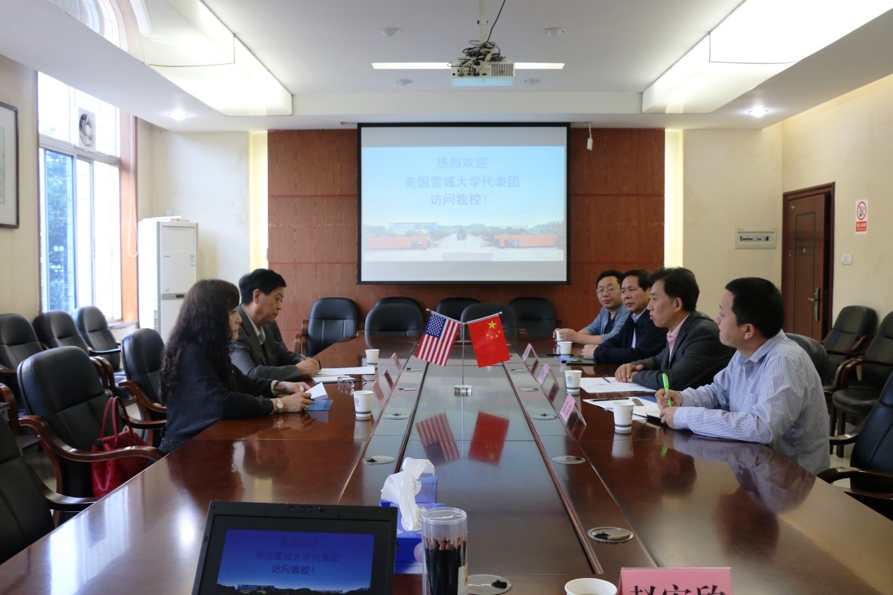 刘世昌对来宾的到访表示热烈欢迎,并简要介绍了长沙学院的基本情况。他指出:长沙学院经过数十年的发展在各个方面都取得了优异的成绩,目前正处于硕士点建设的关键时期。学校践行“开放办学”的理念,积极与海外高水平大学建立联系,开展多种形式的交流与合作以不断提升自身国际化水平。刘占江博士对刘世昌副校长的欢迎表示感谢,并全面介绍了雪城大学的基本情况和优势学科。经过商讨,双方就以下方面达成初步合作意向:一、长沙学院与雪城大学将在今年签订校际合作协议,确定重点合作的领域和方向;二、长沙学院将与雪城大学开展 “2+2”“3+1”模式本科学生联合培养项目、“3+2”和“4+1”模式本硕连读学生联合培养项目以及短期学生交流项目;三、长沙学院将选派管理干部和教师赴雪城大学进行短期研修;四、雪城大学将与我校联合申请湖南省教育厅“海外名师”项目,推荐知名专家来我校讲学及开展科研合作。刘占江博士还热情邀请刘世昌副校长于年底访问雪城大学,届时正式签署双方合作协议。
