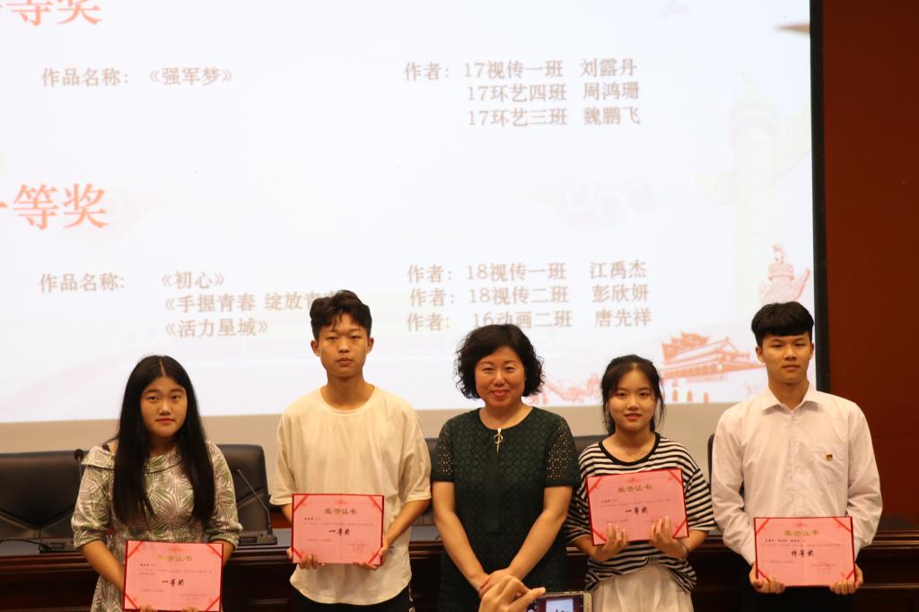 为全面把握习近平新时代中国特色社会主义思想的内涵和精髓,艺术设计学院在2018年“校园廉洁,文明你我”作品大赛的基础上,组织策划了以“不忘初心、牢记使命”为主题的2019年廉洁美术作品大赛。历时两个多月的征集,大赛共收到绘画、书法、海报设计、传统手工艺、短视频、文学六大类作品共100余份。由艺术设计学院专业教师组成评审团开启认真评选,最终评选出特等奖1名,一等奖3名,二等奖6名,三等奖10名,并将其中34份优秀作品整理印刷成册,赠与学校相关部门及兄弟学院,向党的98周岁华诞献礼。精美的美术作品集生动展现了艺术设计学院学子们对青春使命的理解,也是艺术设计学院在加强美育、提高学生的审美和人文素质上取得的优秀成果。最后,艺术设计学院胡嫔党总支书记为新党员寄语,全体新党员在党旗下庄严宣读入党誓词。
