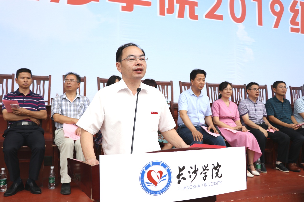 同学们,浏阳河畔闻征鼓,只争朝夕启新程。让我们接过青春奋斗的接力棒,弘扬爱国主义精神,勇担时代责任,加快青春步伐,在长沙学院书写你们最亮丽的青春诗篇。