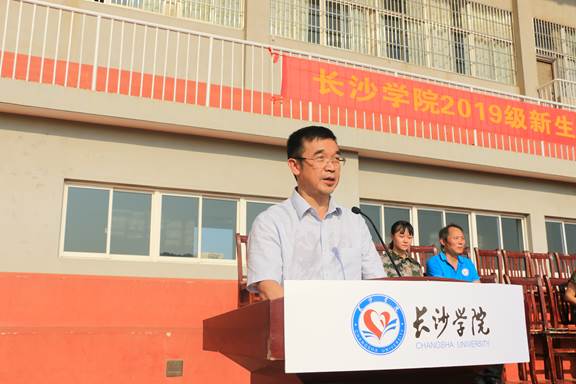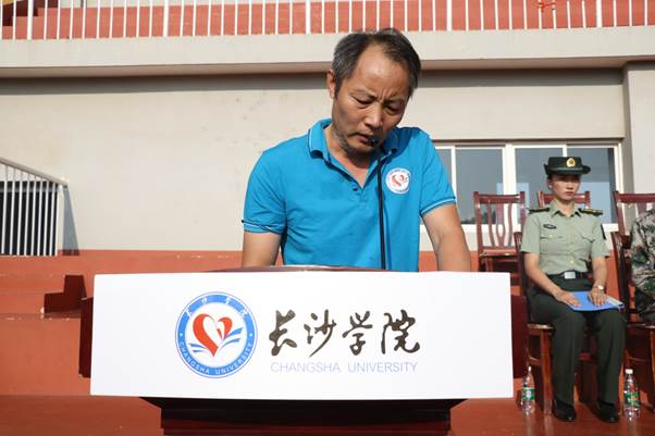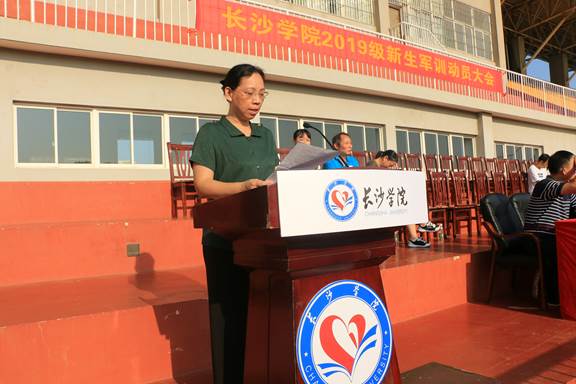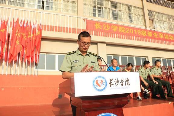 动员大会在庄严的国歌声中拉开帷幕。武装部副部长王成岗宣布营、连长任命,全体新生用热烈的掌声迎接教官们出场。伴随着激昂雄壮的奏乐,副校长张世英为各军训团、营授旗。学工部部长贺革宣读了长沙学院2019级新生军训纪律要求,新生军训工作将严格按照《普通高等学校军事课教学大纲》和《长沙学院军事技能训练组织实施细则(暂行)》开展。