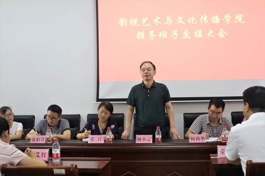 9月3日下午,校长杨小云在党委委员、组织统战部部长何利华的陪同下赴影视艺术与文化传播学院主持干部任免仪式并指导开学工作。影视艺术与文化传播学院全体教职员工及新、老班子成员参加会议。