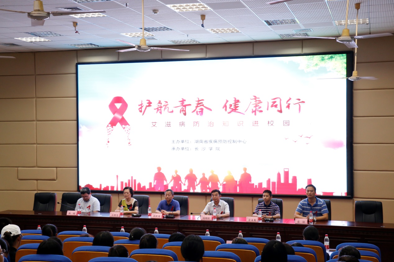 为全面落实健康中国行动,进一步推进高校预防艾滋病工作,9月23日下午,湖南省疾控中心联合长沙学院举办了“护航青春,健康同行”艾滋病防治知识进校园活动。湖南省疾病预防控制中心党委书记黄跃龙,长沙学院党委委员、副校长周明侠出席了活动。