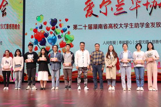 “感恩的心,感谢有你……”10月11日晚,在长沙学院大礼堂,一首合唱《感恩的心》掀起了爱尔兰华协会举办的第二十届湖南省高校大学生助学金发放仪式暨感恩晚会高潮。现场共计发放助学金25万元,资助了来自长沙学院、湖南师范大学、湖南中医药大学、湖南涉外经济学院等高校的50名贫困学子,助力他们顺利完成学业。我校有11名学生受到资助。