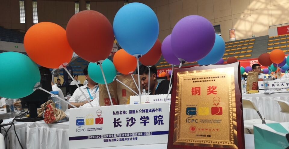 10月12至10月13日,计数学院程序设计竞赛代表队在东北林业大学举行的2019年中国大学生程序设计竞赛(哈尔滨)中获得铜牌。10月19日至10月20日,分别在宁夏理工大学举行的第44届国际大学生程序设计竞赛亚洲区域赛(银川)和在厦门理工学院举办的2019年第5届中国大学生程序设计竞赛(厦门)中各斩获银奖1项。与此同时10月19日,在湖南益阳举行的2019年湖南省第二届大学生测绘综合技能大赛中荣获三等奖1项,获奖级别均创下长沙学院的历史新高。据悉,国际大学生程序设计竞赛被誉为计算机领域的奥林匹克竞赛;中国大学生程序设计竞赛则是中国水平最高、规模最大的计算机学科竞赛。