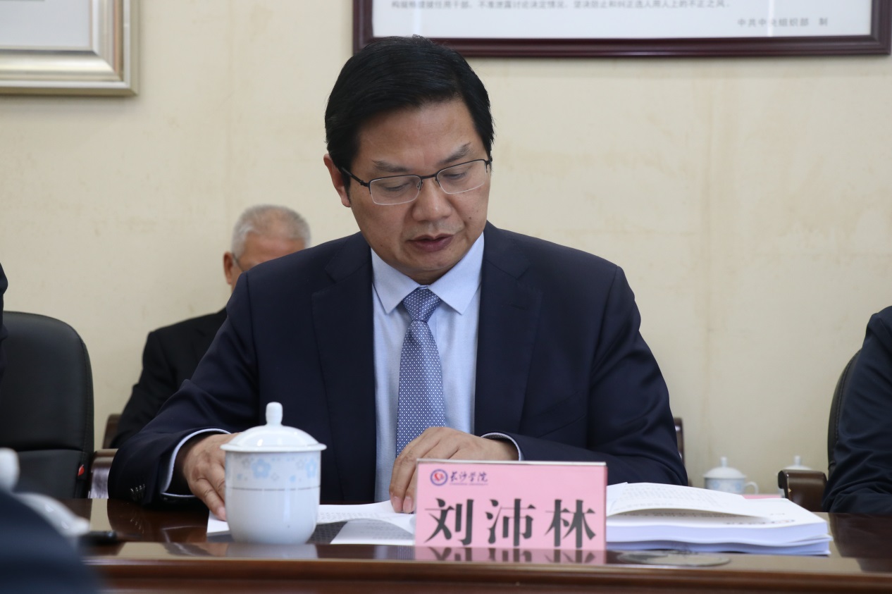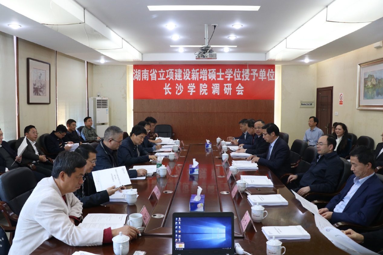 在随后的意见反馈会上,调研组专家充分肯定了我校立项新增硕士学位授予单位以来取得的成绩,认同我校整体办学实力不断提升,为长沙市社会经济发展做出了突出贡献。学校通过积极整合校内外资源,立项建设单位与学位点的特色进一步彰显,形成了比较鲜明的人才培养特色。近年来师资队伍建设成效显著,教学成果与教师竞赛获奖成果丰硕,科研成果数量与质量实现新突破,研究生培养与管理水平稳步提高。对照申报条件,专家组还提出了一些建设性意见和建议。刘沛林十分感谢专家组提出的宝贵建议,并表示学校一定对照要求,整合资源,继续做好接下来的“申硕”准备工作。