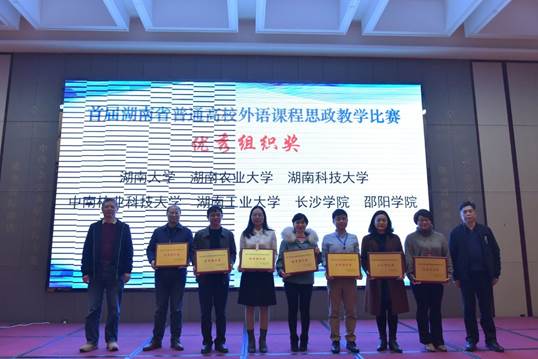 12月13-15日,首届湖南省普通高校外语课程思政教学比赛决赛在长沙隆华国际大酒店举行,我校外国语学院教师刘晓露老师获得个人二等奖,此外,我校与湖南大学等7家单位一同荣获“优秀组织奖”。
