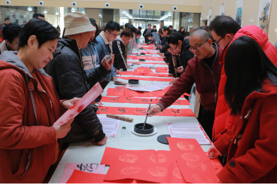一张张铺陈开来的红宣纸尽显中华传统文化之韵味,横竖撇捺,勾连交错间,记忆了历史,传承了文明。12日27日下午,由我校党委宣传部主办、图书馆承办、长沙学院教师书法协会和学生书法协会协办的“挥毫泼墨送春联,龙飞凤舞迎新春”春联文化活动在图书馆的一楼举办。