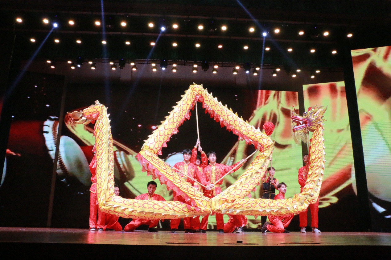 伴随着校艺术团舞蹈队青春洋溢的开场舞,2020年元旦晚会在全校师生的热烈欢呼中拉开序幕。晚会共12个节目,古典与流行兼收,温情与火热并举,主题鲜明,精彩纷呈,为观众呈现了一场丰盛的视听盛宴。来自校武术队的舞狮《龙腾盛世》气势恢宏,引燃舞台,舞出了文化自信。校艺术团的同学们带来的歌舞串烧、舞蹈、朗诵等节目展示了青年学生的蓬勃朝气,赢得台下阵阵掌声。电信学院2018级电子2班和计数学院2019级计科2班以班级为单位表演了创意舞蹈,《新青年,“耀”青春》,别开生面的舞台展示将现场气氛推向高潮。