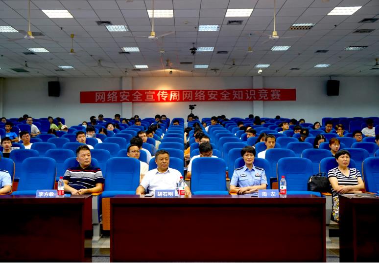 本次活动邀请了长沙市公安局反电信网络诈骗中心宣传工作室负责人翟安和梆梆安全公司湖南区域负责人彭帅进行了网络安全知识讲座,他们分别宣讲了电信网络诈骗防范和手机APP信息安全防护的相关知识。活动还组织在场学生开展了网络安全普法知识竞赛,有60名同学分别获得竞赛一、二、三等奖。