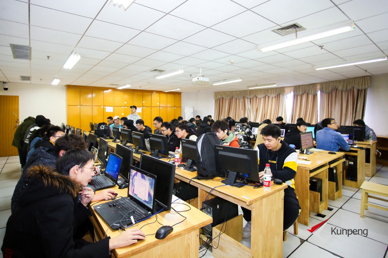 下午场鲲鹏软件迁移实践于13:30在致远楼的机房如期进行,通过PU抢报成功的240名同学早早的在机房门外等候,沙箱演练非常吸引学生们的参与兴趣,18物联02班张鹏同学就“抢票成功”,他高兴的说到:“能够接触到华为最新的培训认证,对于技能提升、就业创业都有很大的帮助!”