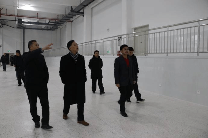 验收组一行仔细查看工程实验实训中心项目的工程完成情况