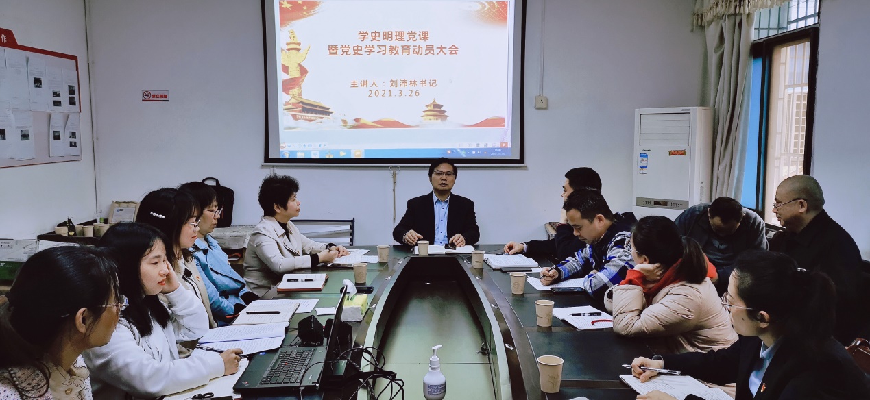 刘沛林围绕“学史明理”这一主题,结合党的历史和亲身体与同志们开展交流。刘沛林指出,学习党史首先要明白学习的意义是什么,要研读哪些著作和书目,学习的重点在哪里以及要力行什么。今年是中国共产党成立100周年,这是矢志践行初心使命的100年,是筚路蓝缕奠基立业的100年,是创造辉煌开辟未来的100年。刘沛林强调,开展党史学习教育,要树立“正确党史观”,要求党员在学习党史的过程中,要坚持运用历史唯物主义和辩证唯物主义的观点和方法论分析看待党从成立到现在过程中所有重要人物、重要事件、重要会议等,要站在当时所处的历史条件和情景中作出客观公正科学的评判,坚决杜绝“历史虚无主义”的不实态度,真正学通弄懂党史,从而坚定政治立场、把好前进方向,做一名思想政治素养合格的党员。最后刘沛林对各位党员提出殷切希望,希望同志们在忙碌中抓学习,在学习中有所感悟,在感悟中促进工作。