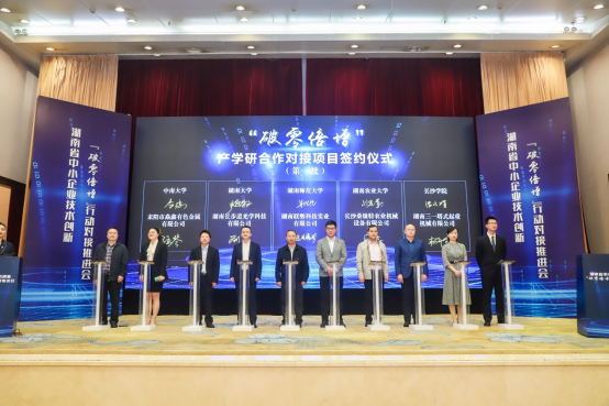 湖南省中小企业技术创新“破零倍增”对接推进会旨在汇聚省内高校院所创新资源,搭建中小企业创新合作平台,共同加大对中小企业创新的支持,推动中小企业成为创新重要发源地。会上,湖南省工信厅总经济师熊琛发布了中小企业200余项技术创新需求,16所高校院所348项战略性新型产业领域前沿性科研成果。我校遴选的“旋转条件下导航测姿一体化接收机”等10项科技成果名列其中。