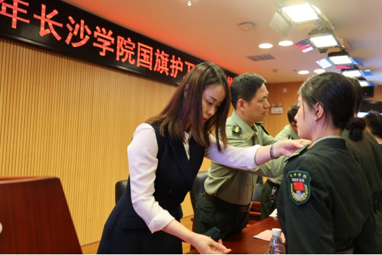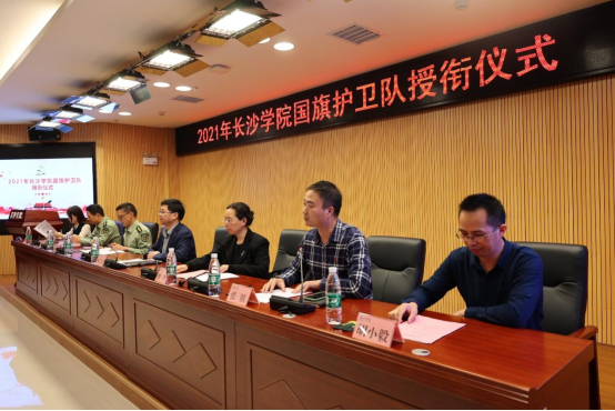 武装部戴伟丁部长在讲话中围绕如何做好“兵头将尾”作辅导发言。他对队员提出了三点要求:一是要端正认识,增强训练的自觉性;二是要听从指挥,增强训练的纪律性;三是要刻苦训练,提高“四会”教学的能力。国旗护卫队要以授衔为契机,承担责任、锐意进取、刻苦训练,为圆满完成长沙学院2021级军训任务而努力奋斗。