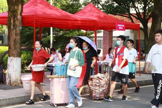 校团委组织40位学生志愿者投身于学校的各个迎新岗位,各学院也派出各院志愿者队伍,帮助新生更加高效地报到。20级工程造价专业的旷迈成同学是今年土木院的迎新志愿者。他早上六点半便已到岗,烈日炎炎,长沙的35度高温下,他忙得满头大汗,却依然积极地帮助和服务每一位新生。问及为何选择做此次迎新的志愿者,旷迈成说:“去年报到时,我受到了许多学长学姐的帮助,让第一次离家上学的我感受到无比的温暖。所以,我希望将这种善意传递,让新一届学生也能感受到如家般的温暖与体贴。”