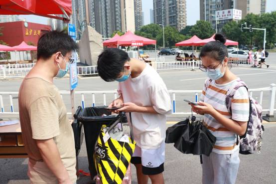 “同学,请先测一下体温。”为迎接新生到来,9月5日、6日,在学校西南门、东南门、北门三个校门口,均有由学校教师党员志愿者、保卫人员、后勤服务人员组成的志愿者,引导新生及家长测体温,查验健康码、行程码、48小时内核酸检测报告,核验入校资格等,靠前把好新生报到疫情防控第一关。
