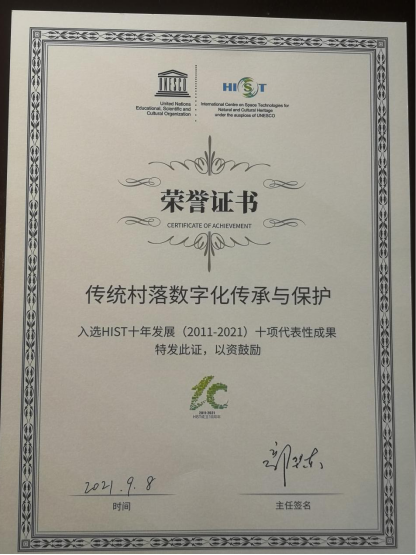 此次学术研讨会上,联合国教科文组织HIST正式发布十年来创造的十大代表性成果,我校的“传统村落数字化传承与保护项目”入选其中。发布词指出:“该项目提出传统村落景观基因理论与方法,建立传统村落遗产数字化传承协同创新平台,形成传统村落遗产数字化技术体系,引领中国古村古镇数字化传承与保护方向。”