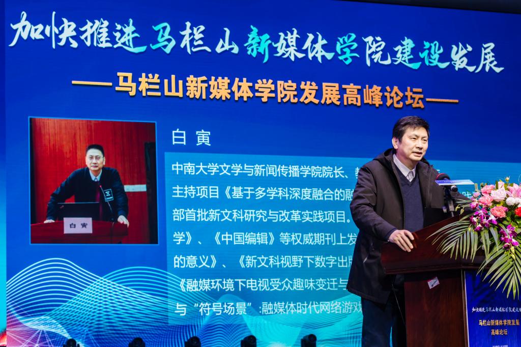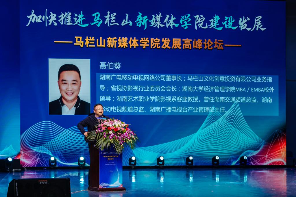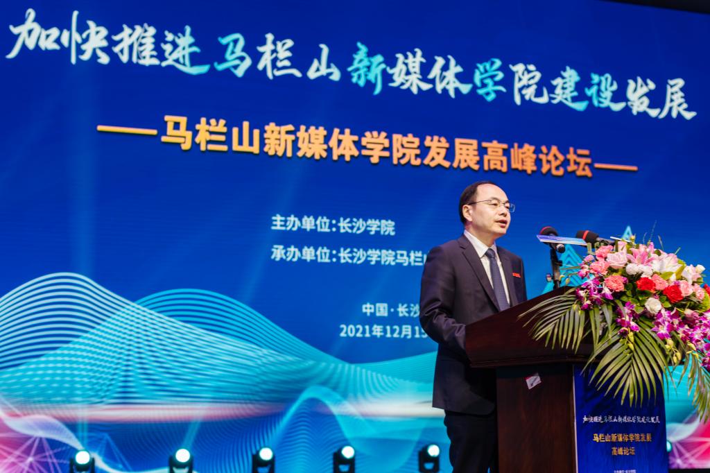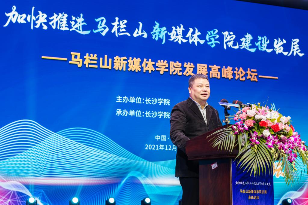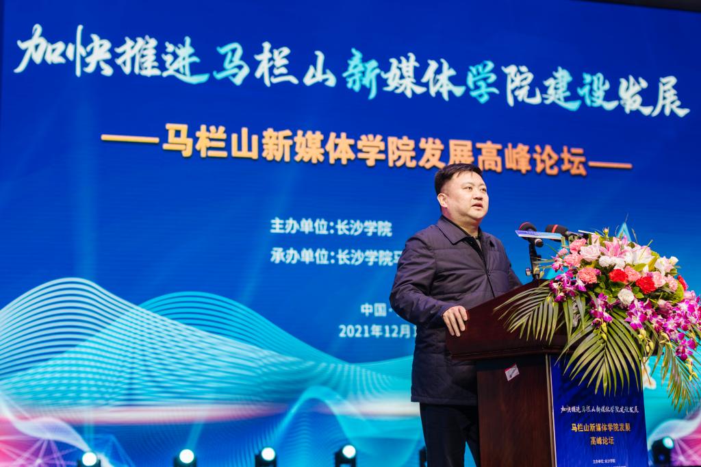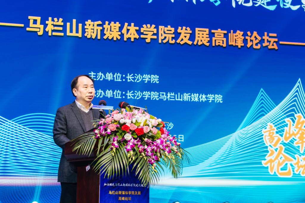 长沙市政协党组副书记陈刚在发言中表示,依托长沙学院创办马栏山新媒体学院,是省委省政府、市委市政府的重大决策部署。加快马栏山新媒体学院建设是落实习近平总书记考察马栏山视频文创产业园重要讲话精神的现实需要,也是助力长沙市推进马栏山文创园建设、打造国际文化创意中心的重要路径。他号召,要以此次高峰论坛为契机,进一步解放思想、科学谋划,紧密对接马栏山视频文创产业园,坚持“文化+科技”深度融合发展,牢牢把握正确舆论导向,运用好区位优势、政策优势和科教优势,全力打造马栏山新媒体学院的育人、科创、智库品牌,为马栏山视频文创产业园建设和长沙国际文化创意中心的打造提供更强有力的人才支撑和智力支持!
