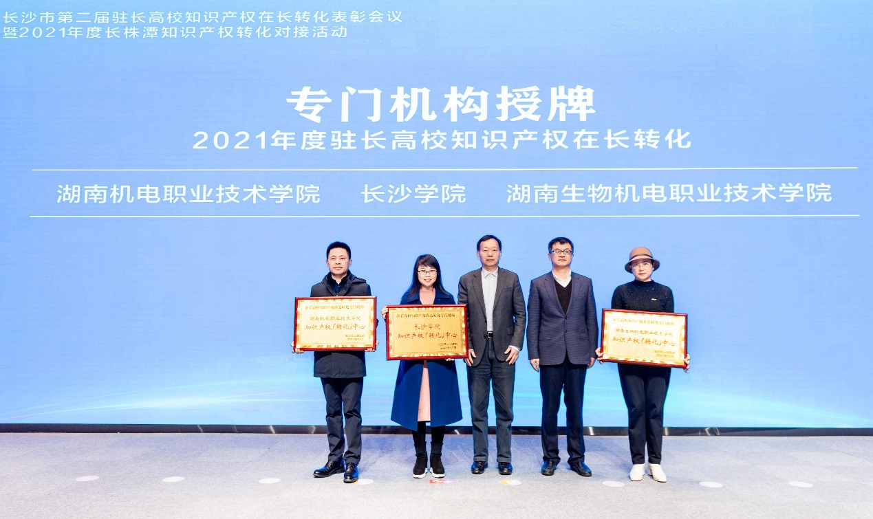 12月14日上午,长沙市第二届驻长高校知识产权在长转化表彰会议暨2021年度长株潭知识产权转化对接活动在长沙市岳麓科创港举行。党委委员、副校长胡石明受邀率队参会,参会人员包括科技处、机电工程学院教师代表。