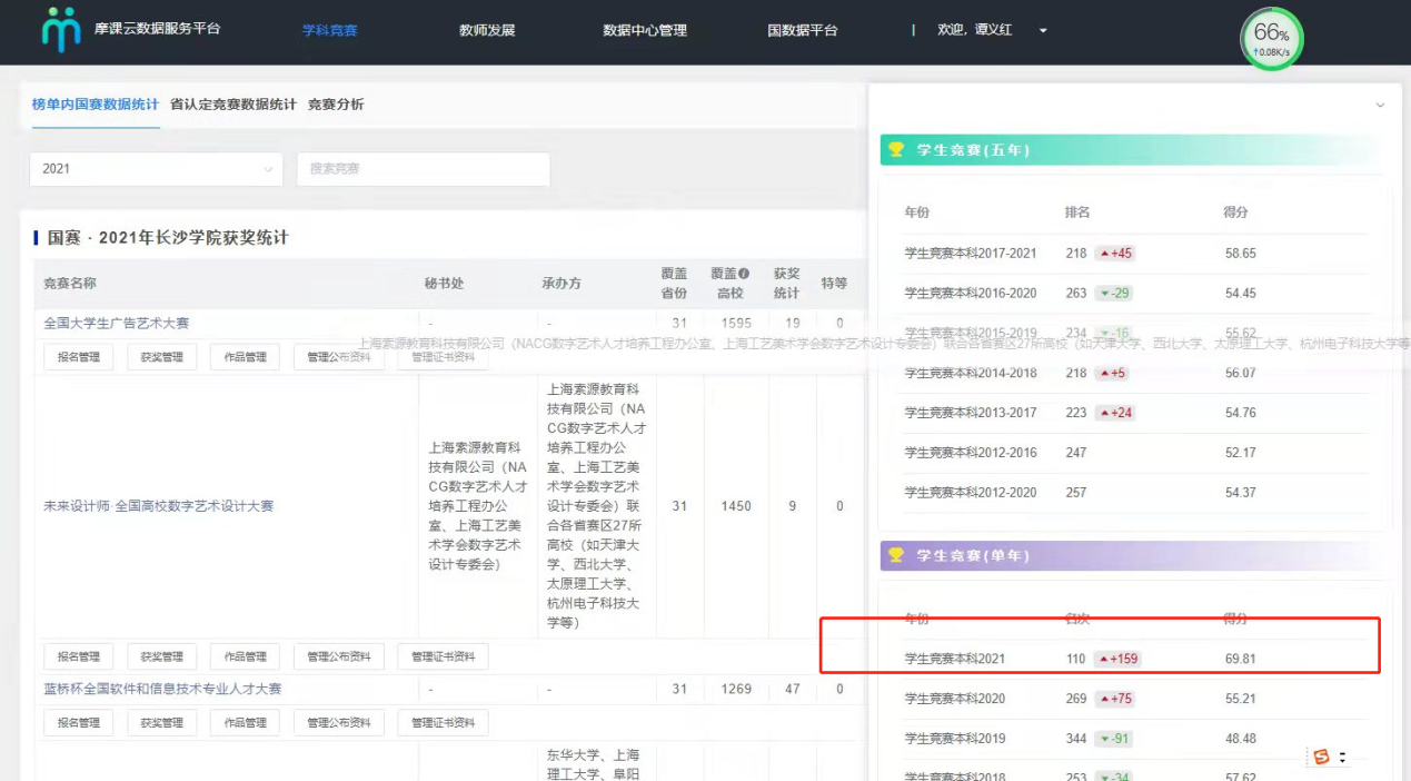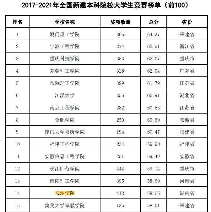 2月22日,中国高等教育学会高校竞赛评估与管理体系研究工作组发布2021全国普通高校大学生竞赛分析报告,我校在2017-2021年全国排名第218位、全省排名第7位,比2016-2020年的排名上升了45位;在2017-2021年全国新建本科院校中排名第14位;在上述榜单中我校稳居省内院校排名第一,超过部分大学高校排名,取得了历史上最好成绩,实现了一次大飞跃、大突破。