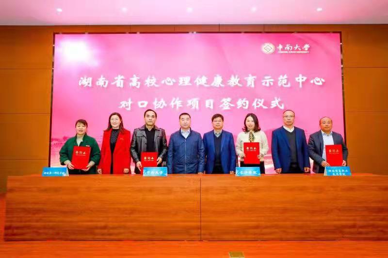 3月7日下午,中南大学、长沙学院、湖南第一师范学院、湖南信息职业技术学院四校“湖南省心理健康教育示范中心对口协作项目签约仪式暨建设交流会”在中南大学新校区毓秀楼云麓阁举行。中南大学党委副书记李景升、我校党委委员、副校长祝磊出席签约仪式并致辞。