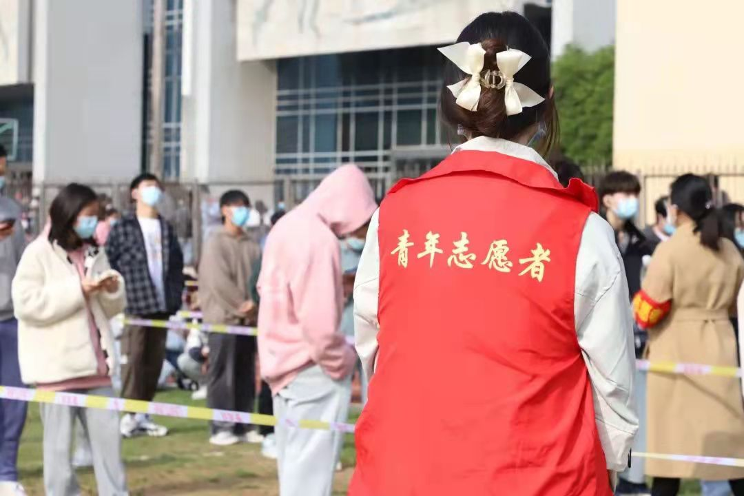要在较短时间内有序完成规模巨大的核酸检测工作,少不了志愿者们的辛勤付出。组织统战部、校团委和各二级学院分别组织了党员及学生志愿者参与核酸检测工作。党委宣传部杜占帅老师这个学期已经是第二次参与疫情防控志愿服务工作了,在核酸检测现场,他负责维持秩序,引导待检人员有序排队。“这次疫情多点爆发,学校组织核酸检测,充分体现了学校对师生生命安全的重视。作为学校的一员,不仅自己要积极贯彻执行疫情防控措施,更需要主动参与学校各级防控工作。”