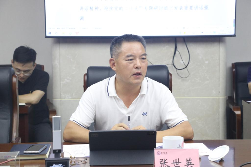 会上,党委副书记汤文胜领学了习近平总书记在省部级主要领导干部“学习习近平总书记重要讲话精神,迎接党的二十大”专题研讨班上的重要讲话精神。党委副书记、校长黄立宏传达了湖南省委副书记、省委教育工作领导小组组长朱国贤同志在2022年全省高校党委书记、校长暑期研讨班上的讲话精神。