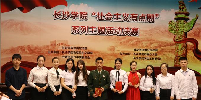 根据省委宣传部和省委教育工委迎接党的“十九大”的重大活动部署,我校今年3月启动了“社会主义‘有点潮’”系列主题活动,广大师生踊跃参与。系列主题活动形式主要包括演(宣)讲比赛、征文比赛和社会主义“有点潮”主题歌创作大赛。22日晚进行了学生组宣讲决赛,晋级决赛的8支队伍围绕坚持和发展中国特色社会主义、实现中国梦的主题,畅谈对科学社会主义特别是中国特色社会主义“四个自信”的认识和体会。来自经济与管理学院的王亦齐身着军装,踏着正步上台,一出场便引来满堂喝彩,他结合自己的军旅生涯,阐述了新时代背景下的强军梦,指出军人的“中国梦”是用信仰守候党国,用热血保卫人民;向琦以《人们的名义时》为题,以热播反腐剧《人民的名义》为切入点,讲述了反腐败工作对官员、对政党及对人民的意义,点明反腐败工作任重而道远;张嘉慧表达了对赤色中国深沉的爱,喊出了我爱我党,我爱我国,我爱这中国红的心声。经济与管理学院由于发动广泛,组织得力,获得学生组演(宣)讲比赛三个一等奖。