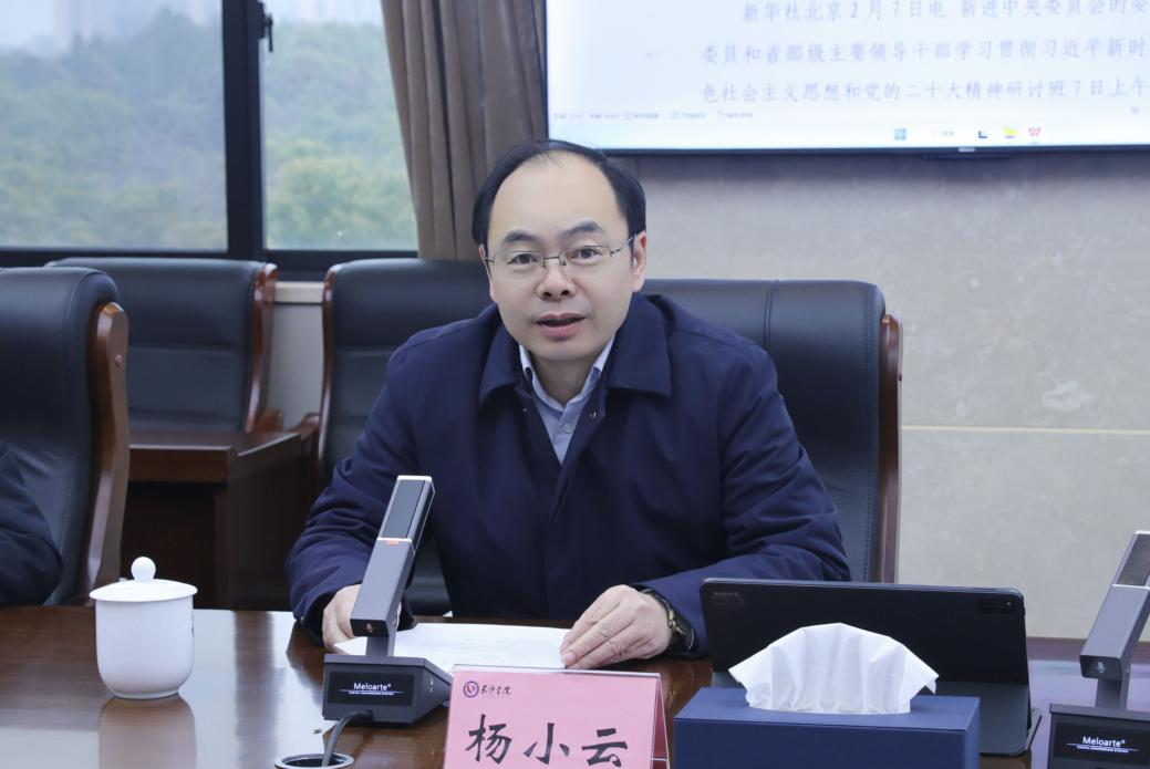 杨小云强调,全校上下要以习近平新时代中国特色社会主义思想为根本遵循,学深悟透习近平总书记的重要讲话精神。学校领导班子要带头学习,做好示范;要通过开展理论宣讲、调整课程设置等多种符合教育规律的方式方法,全面推动习近平新时代中国特色社会主义思想和党的二十大精神进教材、进课堂、进头脑;学校各级党员干部要切实把思想和行动统一到习近平总书记重要讲话精神上来,锚定加快建设教育强省目标,紧密结合学校全年的目标任务,精准对照“升硕”等中心工作的指标体系,真抓实干,奋力推进学校高质量发展。