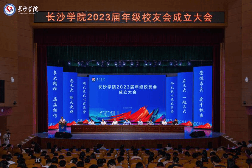 6月9日下午,长沙学院2023届年级校友会成立大会在学生活动中心召开,党委副书记、校长黄立宏出席会议并讲话,全体在家校领导出席会议并向2023届年级校友会理事会成员颁发聘书。会议由副校长陈世平主持。