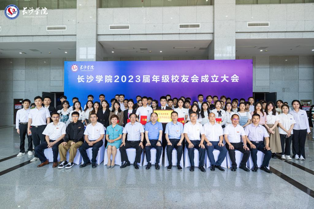 湖南金井茶业集团有限公司总经理周宇、中央广播电视总台音乐制作人陈彦宇等往届优秀校友代表,学校相关职能部门负责人,各二级学院党总支书记、副书记,2023届全体年级辅导员,2023届年级校友会理事会全体成员,2023届毕业生代表参加成立大会。
