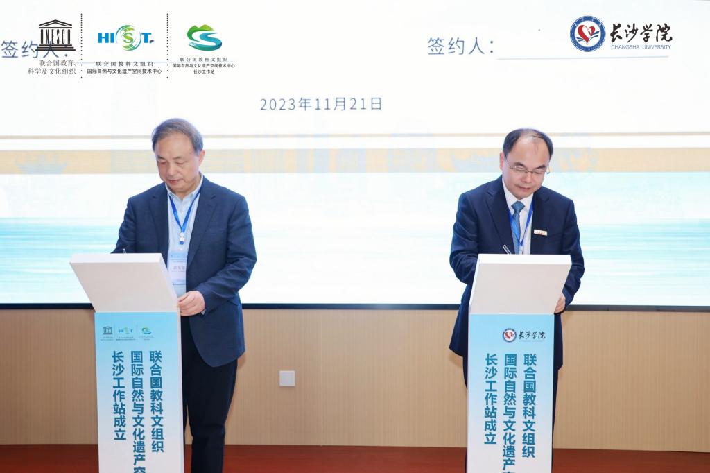陈刚对长沙工作站的成立表示祝贺。他表示,近年来长沙学院在高质量人才培养、高水平科学研究、高效能成果转化等方面取得显著成绩,在数字赋能文化创意、文旅融合等领域形成鲜明特色。长沙愿意一如既往地做长沙学院和长沙工作站的坚定支持者,相信在联合国教科文组织国际自然与文化遗产空间技术中心的大力支持下,长沙市及长沙学院定会在文化遗产保护、文旅融合发展上取得更加灿烂的成绩,为长沙全力建设全球研发中心城市贡献力量。