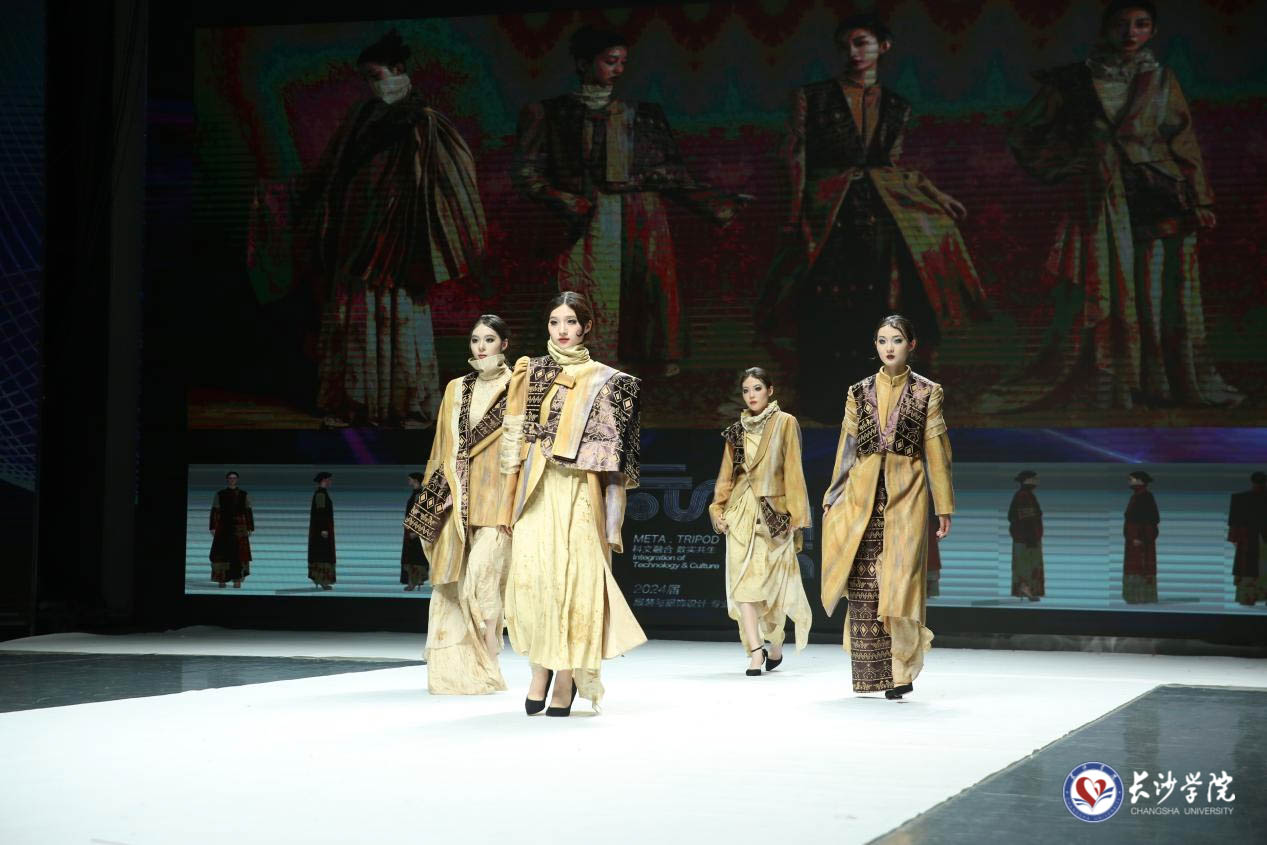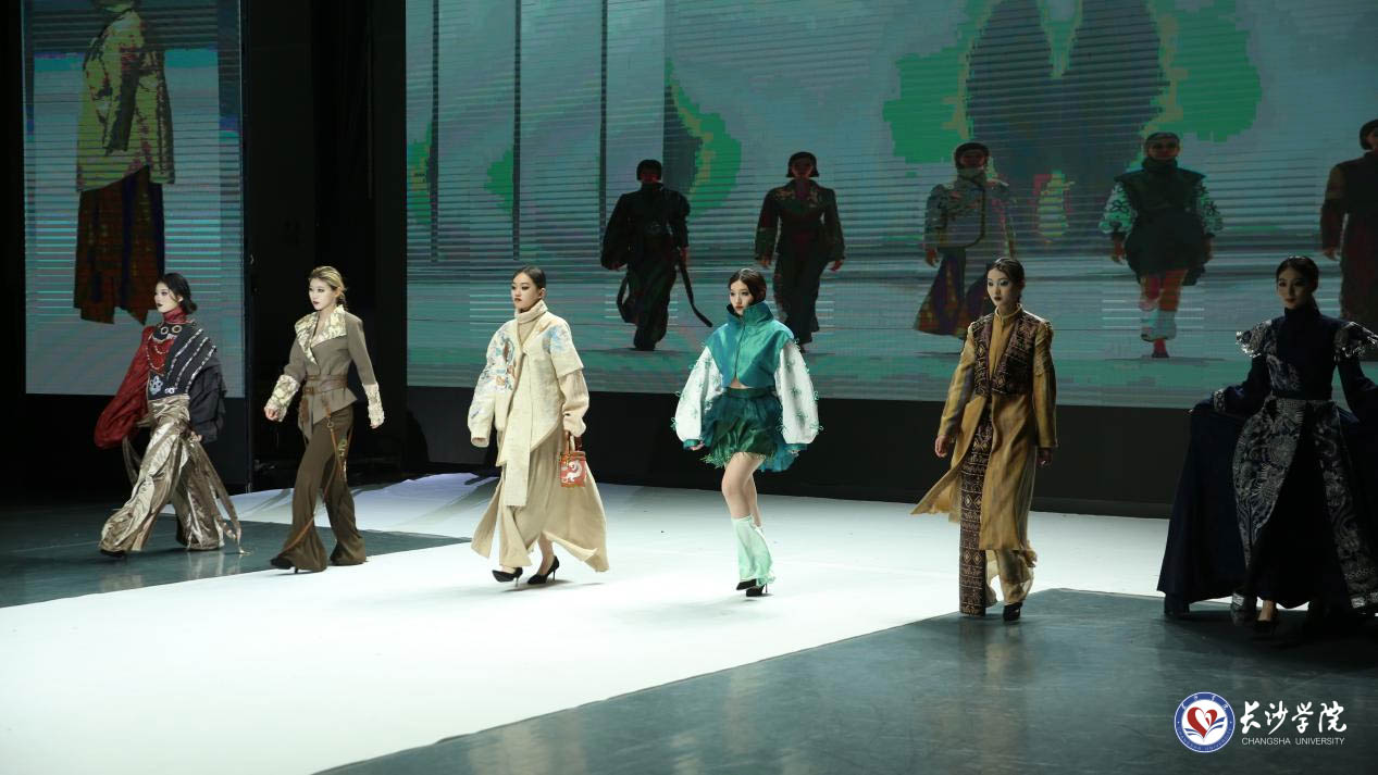 本次展演,服装与服饰设计专业毕业生们围绕中华优秀传统文化、湖湘非遗、环境保护等开展创作,探索服装与文化、社会、环境等的深层联系,以科技为文化赋能,展示了扎实的专业技能和前沿服装数字技术。整场演出,服装作品琳琅满目、美轮美奂,真人走秀与3D模特、实物作品与数字时尚同步展演,既呈现出服装设计与科技融合的科技之美,又展示出历史文化底蕴的当代艺术传承与设计创新,呈现了极高的时尚魅力和国际风范,也是对我校服装与服饰设计专业人才培养质量的全方位检阅。