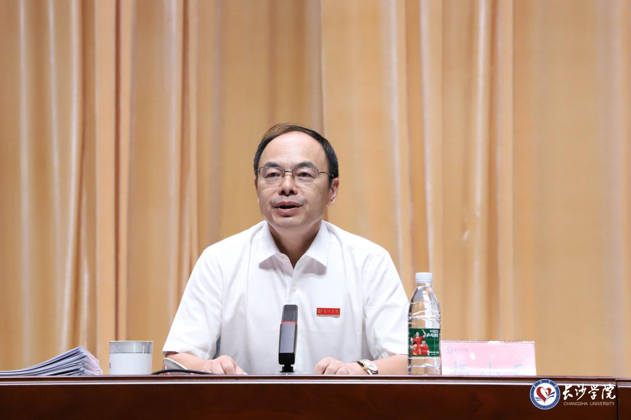 陈赤平强调,下半年,全校上下要进一步统一思想、凝心聚力、实干担当,积极开展迎接新一轮本科教育教学审核评估工作,做精以评促建,做好以评促改,做强以评促管,做实以评促强;要扎实推进第二批硕士学位建设点建设工作,持续做优做强特色学科建设;要以服务师生为宗旨,持续提高服务支撑保障水平,积极推进“智慧长大”建设,有力有序做好基础设施、教学科研条件和学生生活条件等改善工作,践行“大安全观”,建设更高水平平安校园。全校上下要强化服务“国之大者、省之大计、校之大事”的目标导向,强化担当作为的责任意识,强化能为善为的本领能力,以实干实绩推动学校高质量发展任务落地见效。