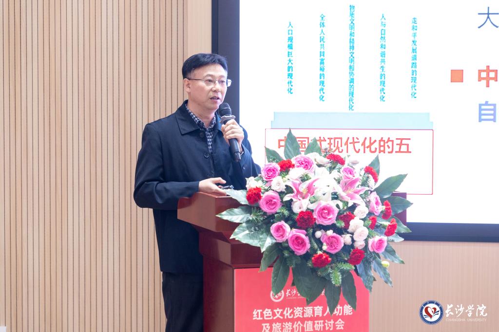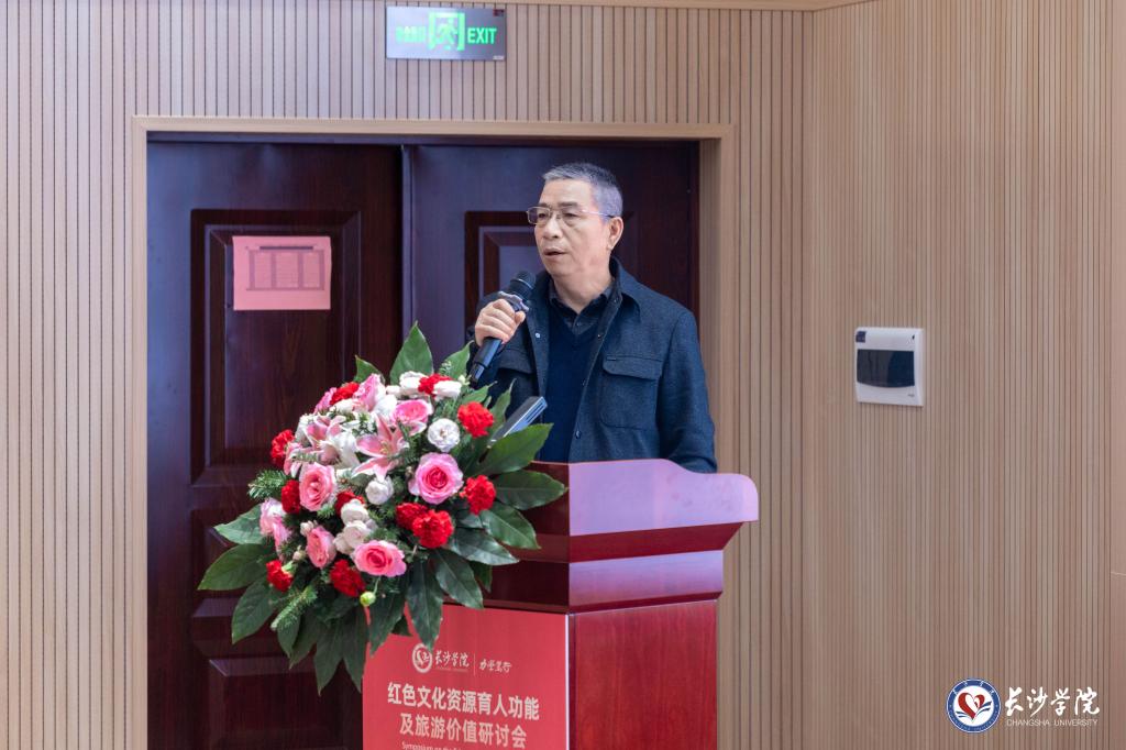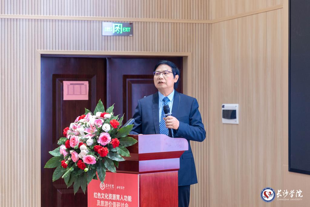 为深入学习贯彻习近平文化思想和习近平总书记关于用好红色资源、赓续红色血脉的重要论述,大力弘扬红色文化,从中汲取昂扬奋进、团结拼搏的精神动力,11月19日下午,由学校党委宣传部主办、经济与管理学院承办的红色文化资源育人功能及旅游价值研讨会在经管类实训中心B307学术报告厅召开。党委副书记刘寒波教授出席会议并致辞。来自湖南师范大学、湘潭大学、湖南省红色文化旅游促进会、马栏山视频文创园的各学界专家和企业嘉宾齐聚一堂,共同探讨红色文化在新时代背景下的育人功能与旅游价值。会议由党委宣传部常务副部长徐远超主持。