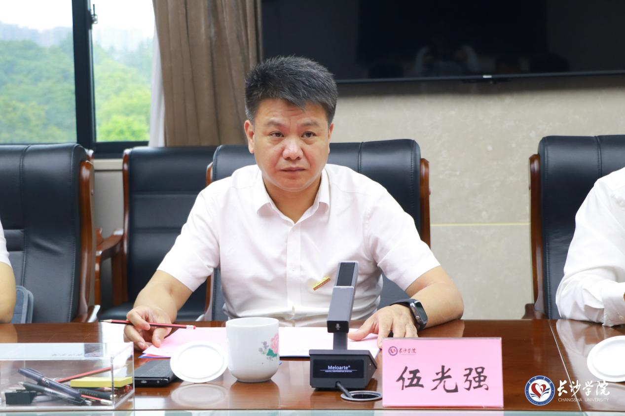 伍光强对我校就本次项目合作给予的重视、支持和指导表示衷心感谢,并表示将以此为契机,与长沙学院共同在人才培养、师资队伍建设、资源共享共建、学生服务保障等方面展开深入的合作。