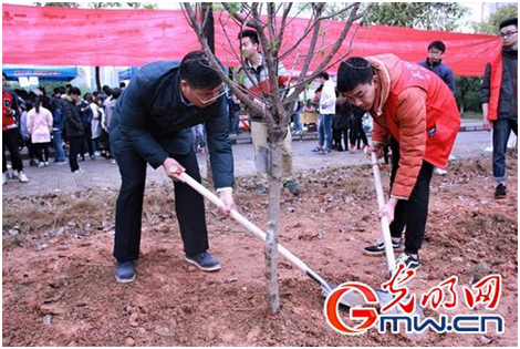 4月11日下午,长沙学院土木工程学院学子和校领导在该校网球场旁一起栽下“土木林”活动的第四片树林——红梅冬林,这些苗木均由师生们自己出资购买。